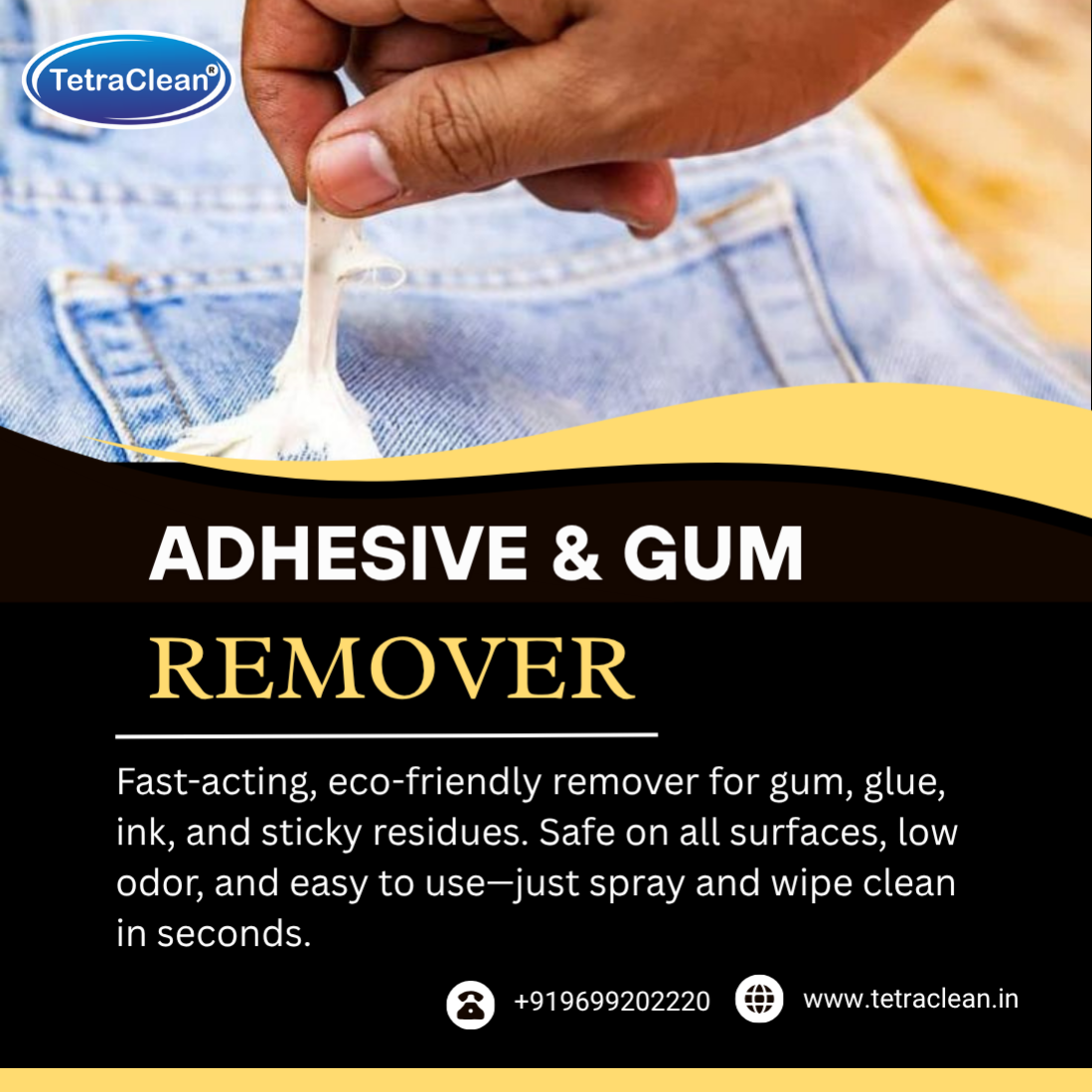 TetraClean® Adhesive & Gum Remover is a highly effective, eco-friendly formula designed to remove chewing gum, adhesives, sticky residues, oil, grease, tar, ink, paint marks, and stubborn stains from multiple surfaces. Works on cloth, carpet, plastic, wood, metal, walls, glass, and upholstery—delivering fast, safe, and hassle-free cleaning.