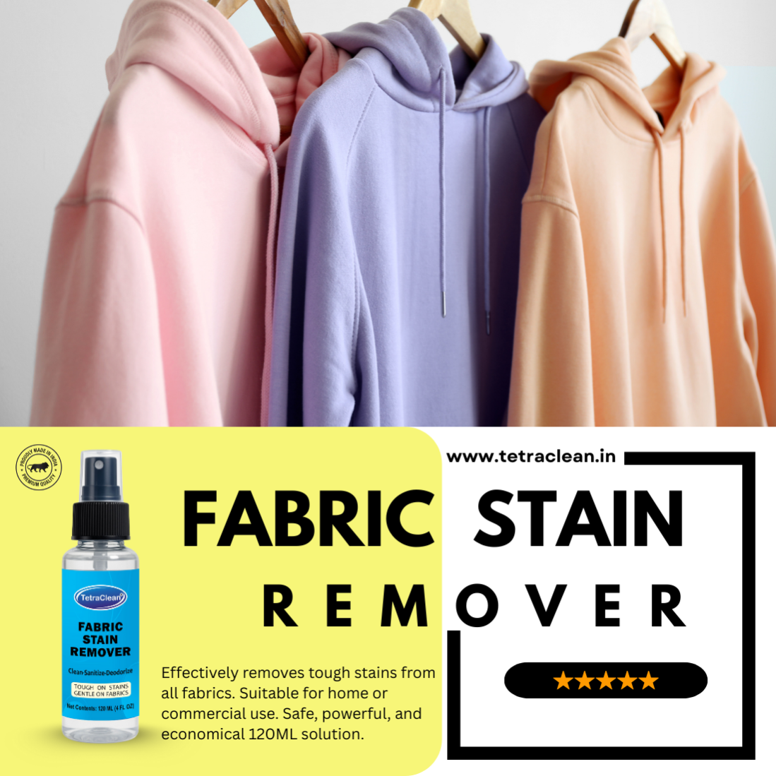 TetraClean Fabric Stain Remover is an advanced cleaning solution designed to tackle the toughest stains on clothes, upholstery, curtains, carpets, and all types of fabrics. Its fast-acting formula penetrates deep into fibers to lift out stubborn stains such as oil, grease, coffee, ink, curry, sweat, wine, and more — without damaging fabric texture or fading colors.