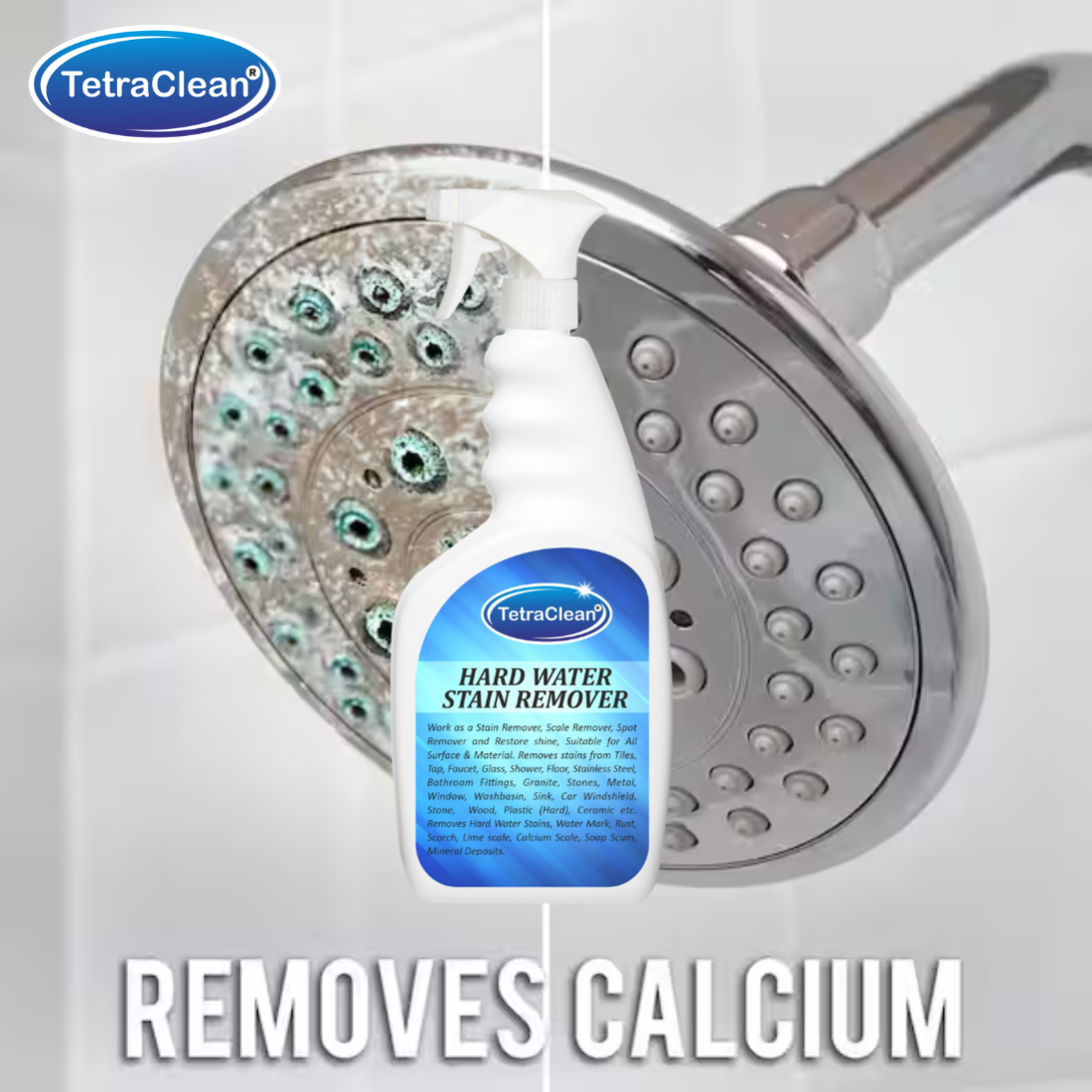 TetraClean Hard Water Stain Remover is a powerful cleaning formula designed to tackle even the toughest hard water stains, calcium deposits, and soap scum. Safe and effective on multiple surfaces such as glass doors, faucets, tiles, sinks, and stainless steel, it brings back the original shine without scratching or damaging your surfaces.