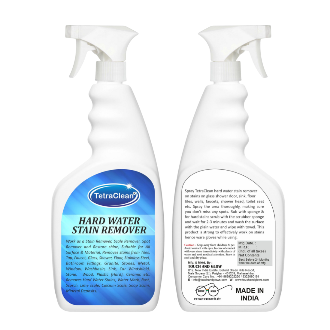 Effortlessly eliminate hard water stains, limescale, rust, and mineral deposits with TetraClean Hard Water Stain Remover. Perfect for glass, tiles, steel, faucets, and bathroom fittings — restore your surfaces to a brilliant, mirror-like shine!