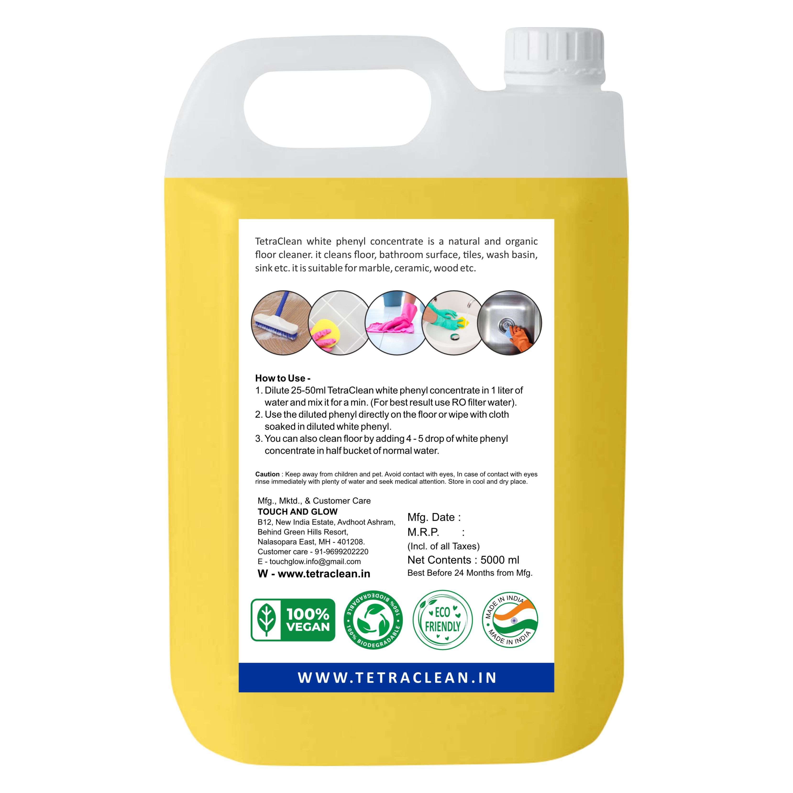 TetraClean Multi-Fragrance White Phenyl Concentrate Liquid, 5 Ltr Make 200L White Floor Cleane