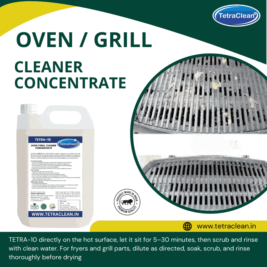 Safe, effective, and economical, TetraClean Oven & Grill Cleaner ensures long-lasting cleanliness, making it the ideal solution for restaurants, hotels, catering services, and households looking for professional-grade results.
