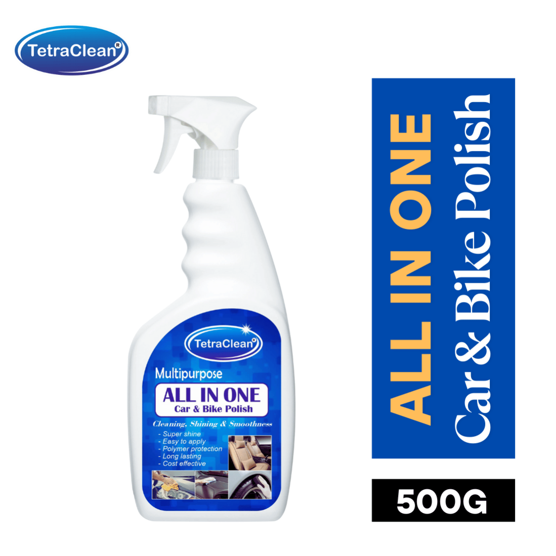 TetraClean All-in-One Car & Bike Polish | Multipurpose Dashboard, Tyre, Leather, Plastic & Metal Shiner | Long-Lasting Protection-500ml