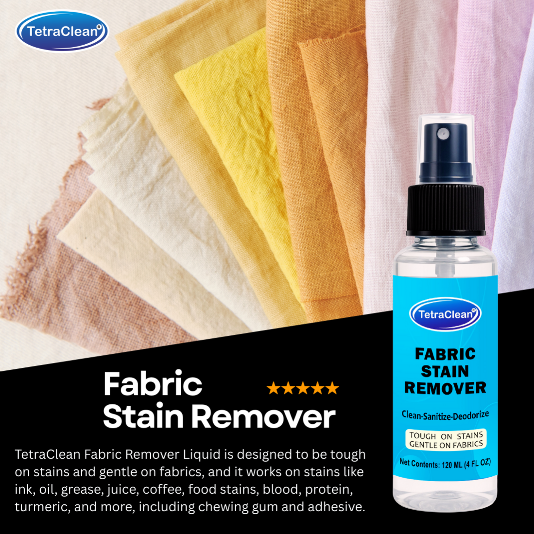 This powerful yet gentle solution is safe for daily use on cotton, wool, silk, polyester, and blends. Unlike harsh chemical cleaners, TetraClean Fabric Stain Remover is eco-friendly, non-toxic, and biodegradable, making it safe for both fabrics and the environment.