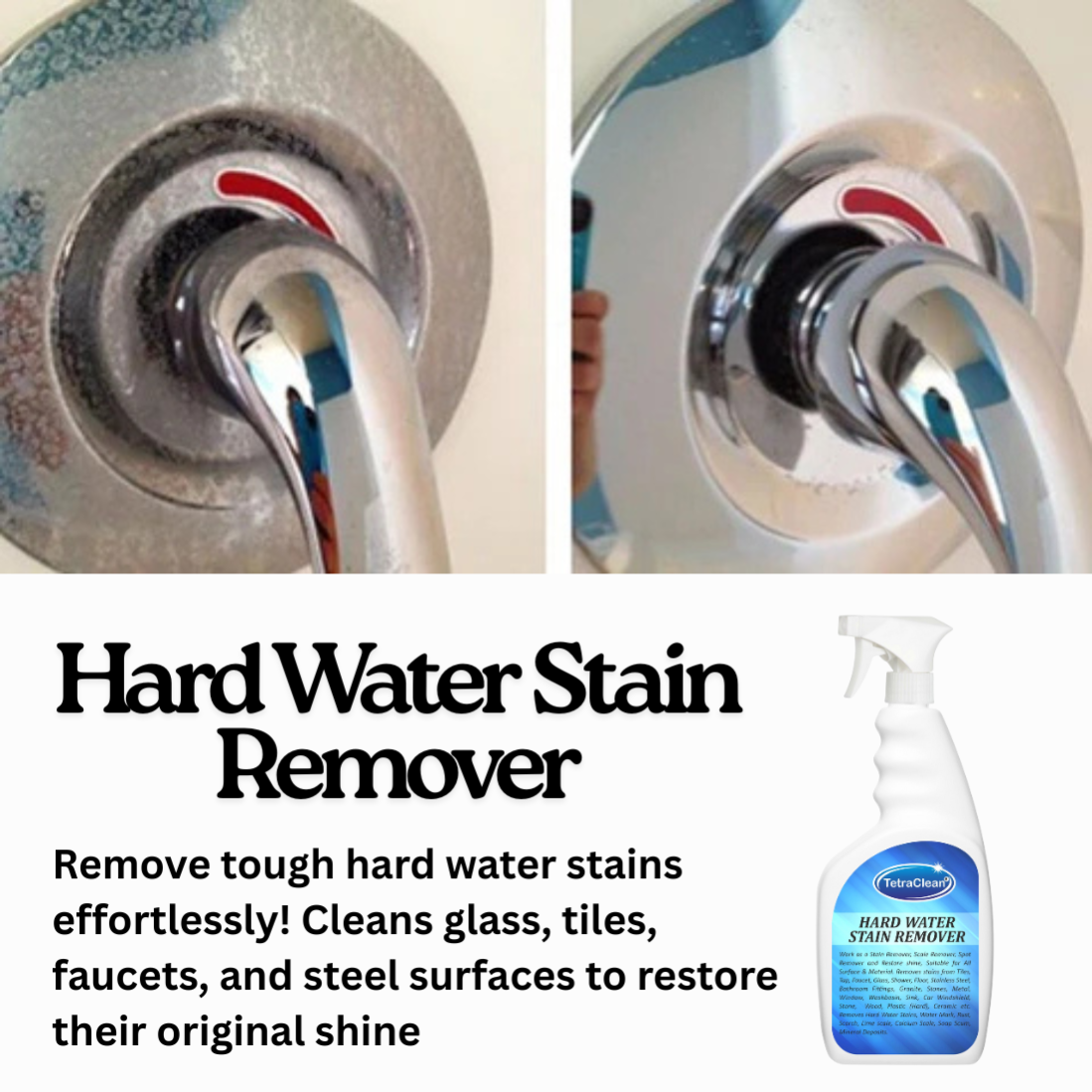TetraClean Hard Water Stain Remover is a powerful cleaning formula designed to tackle even the toughest hard water stains, calcium deposits, and soap scum. Safe and effective on multiple surfaces such as glass doors, faucets, tiles, sinks, and stainless steel, it brings back the original shine without scratching or damaging your surfaces.