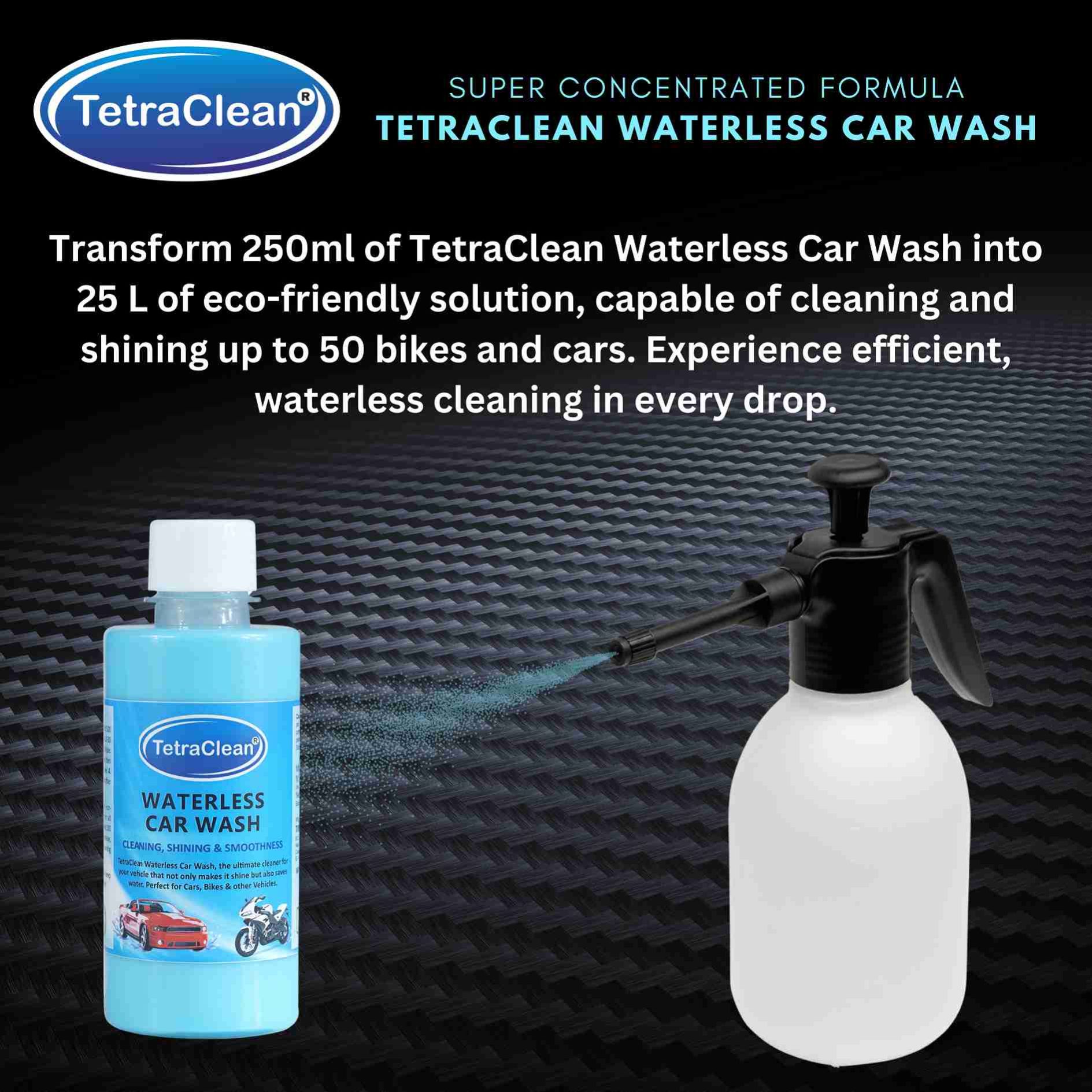 Clean, shine, and protect your vehicle anytime, anywhere with TetraClean Waterless Car Wash. Just spray, wipe, and enjoy a smooth, glossy finish without using a single drop of water.